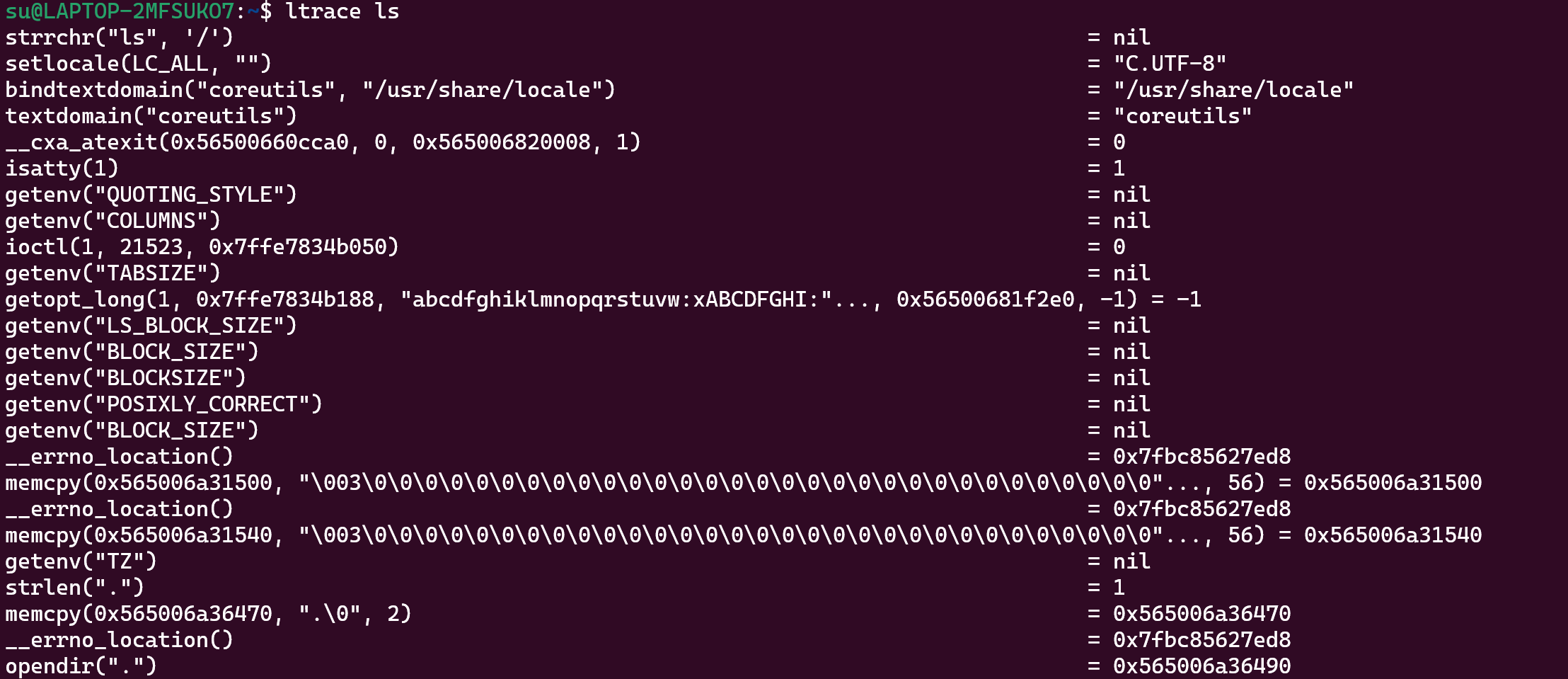 #ltrace ls ,其中调用c库函数 strlen(“./“)